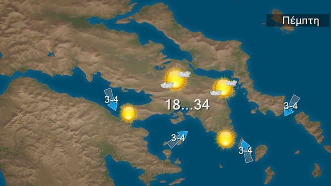 - Η θερμοκρασία θα φτάσει και τους 35 βαθμούς κυρίως στη Θεσσαλία τη Ανατολική Στερεά και την Ανατολική Πελοπόννησο