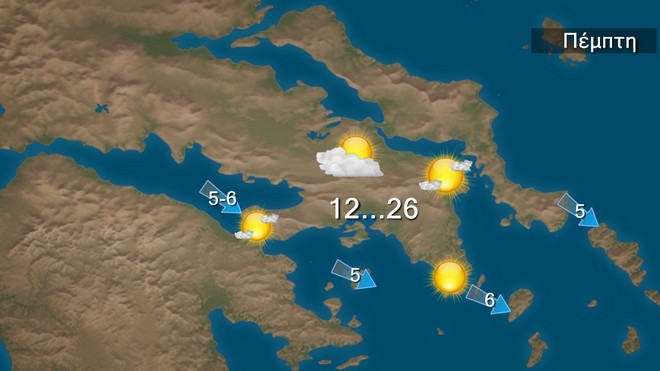 - Θερμοκρασία στους 24 με 27 βαθμούς στο Ιόνιο και τα ηπειρωτικά και 23 με 25 στα νησιά του Αιγαίου
