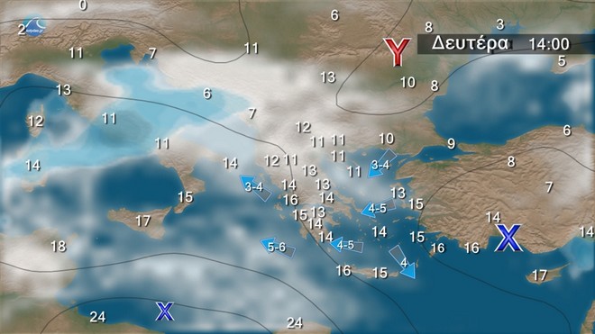 Η πρόγνωση του καιρού για την Δευτέρα