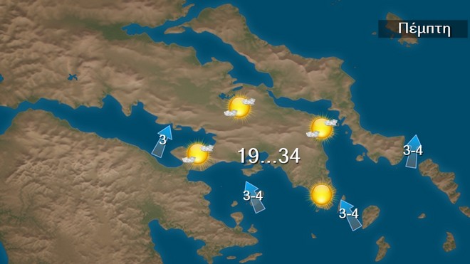 Στην Αττική προβλέπεται γενικά αίθριος καιρός. Οι άνεμοι θα πνέουν μεταβλητοί και στα θαλάσσια και παραθαλάσσια τις μεσημβρινές ώρες νότιοι νοτιοανατολικοί έως 4 μποφόρ. Η θερμοκρασία θα κυμανθεί από 19 έως 34 βαθμούς Κελσίου.