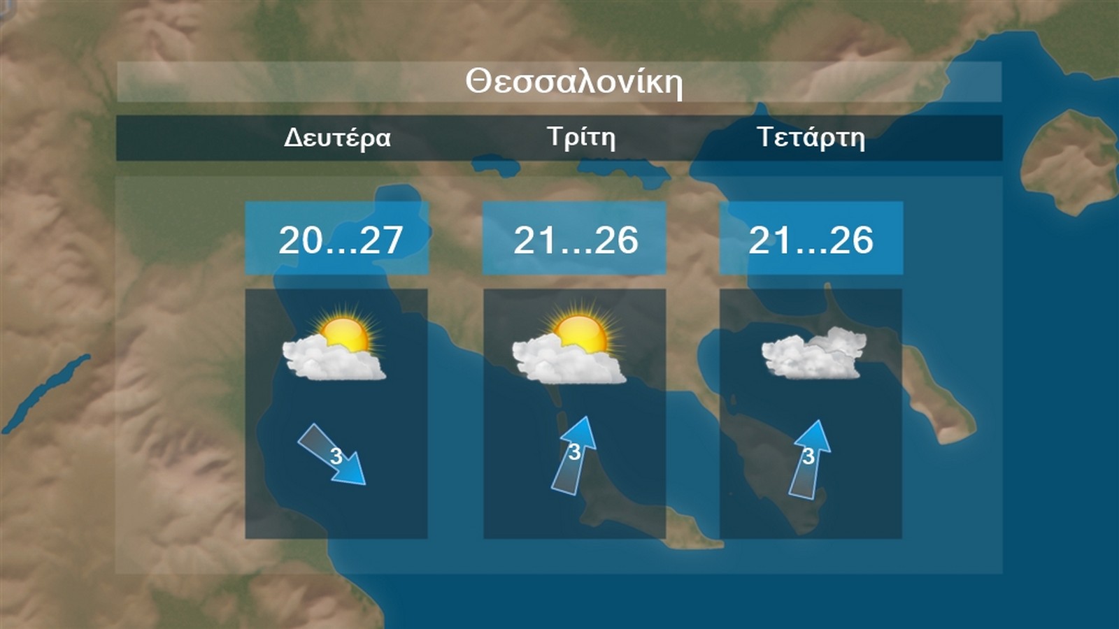 Στη Θεσσαλονίκη προβλέπονται λίγες αραιές νεφώσεις. Τις πρώτες πρωινές ώρες τοπικά περιορισμένη ορατότητα και πιθανόν τοπικές ομίχλες. Άνεμοι μεταβλητοί 3 μποφόρ και θερμοκρασία από 16 έως 25 βαθμούς Κελσίου.