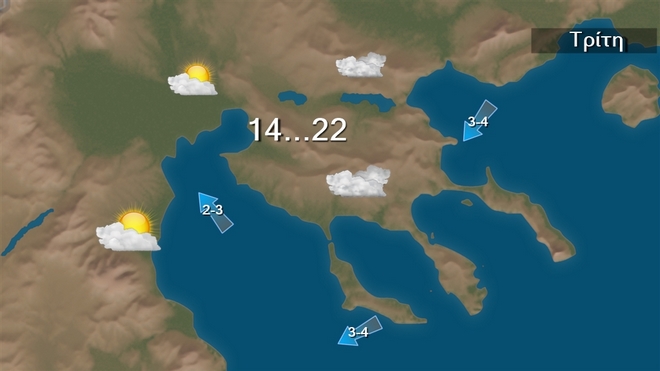 Στη Θεσσαλονίκη προβλέπονται νεφώσεις παροδικά αυξημένες με πιθανότητα ασθενών τοπικών βροχών κατά διαστήματα. Οι άνεμοι θα πνέουν αρχικά ανατολικοί βορειοανατολικοί 3 με 4 μποφόρ και από το απόγευμα μεταβλητοί ασθενείς. Η θερμοκρασία θα κυμανθεί από 14 έως 22 βαθμούς Κελσίου.