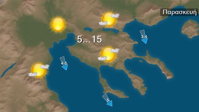 Στη Θεσσαλονίκη προβλέπεται γενικά αίθριος καιρός με λίγες νεφώσεις. Οι άνεμοι θα πνέουν βόρειοι βορειοδυτικοί 3 με 5 και πρόσκαιρα στο Θερμαΐκό 5-6 μποφόρ. Η θερμοκρασία θα κυμανθεί από 5 έως 15 βαθμούς Κελσίου.