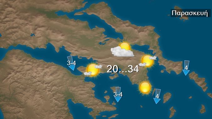 Στη Θεσσαλονίκη προβλέπονται λίγες νεφώσεις, πρόσκαιρα αυξημένες τις απογευματινές ώρες οπότε είναι πιθανόν να σημειωθούν τοπικοί όμβροι στα γύρω ορεινά. Οι άνεμοι θα πνέουν μεταβλητοί ασθενείς και πρόσκαιρα το απόγευμα νότιοι. Η θερμοκρασία θα κυμανθεί από 19 έως 31 βαθμούς Κελσίου.