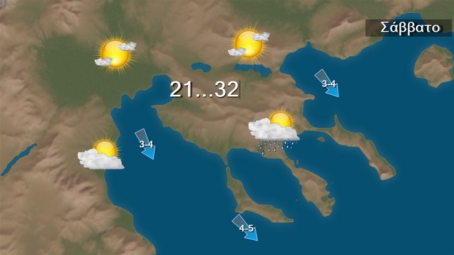 Οι άνεμοι θα πνέουν βορειοδυτικοί 4 με 6 μποφόρ και η θερμοκρασία θα κυμανθεί από 21 έως 32 βαθμούς Κελσίου.