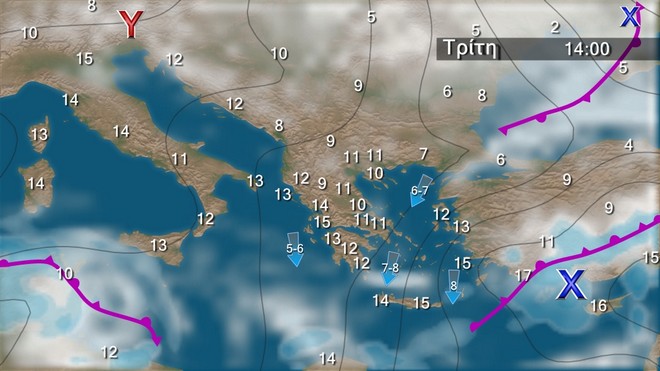 Οι βοριάδες θα εξακολουθήσουν να δημιουργούν προβλήματα στις ακτοπλοϊκές συγκοινωνίες καθώς τα 8 με 9 μποφόρ θα διατηρηθούν μέχρι και τις βραδινές ώρες στο κεντρικό και νότιο Αιγαίο.