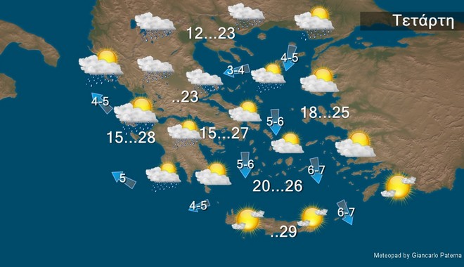 • Παροδικές βροχές στα δυτικά κεντρικά και βόρεια και τοπικές νεφώσεις στα υπόλοιπα