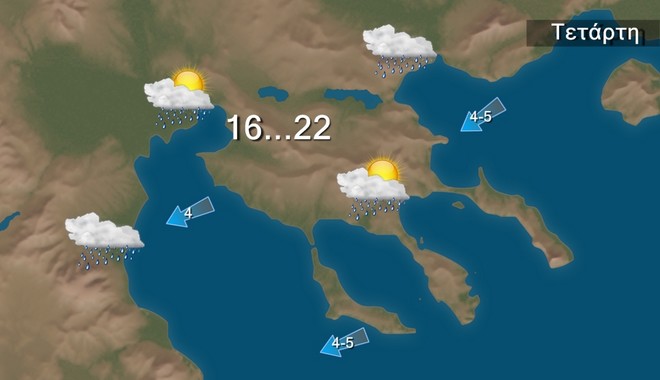 Σήμερα Τετάρτη στη Μακεδονία, τη Θεσσαλία, την κεντρική και την ανατολική Στερεά, τις Σποράδες και την Εύβοια προβλέπονται αυξημένες νεφώσεις με τοπικές βροχές και σποραδικές καταιγίδες κυρίως τις πρωινές ώρες. Στη δυτική Ελλάδα τοπικές βροχές και σποραδικές καταιγίδες από το μεσημέρι. Στην υπόλοιπη χώρα προβλέπεται σχεδόν αίθριος καιρός.