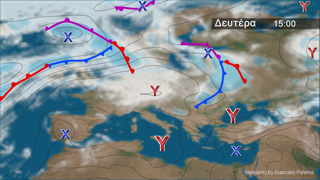 Στον γενικό χάρτη της Ευρώπης διακρίνονται τα χαμηλά που επηρεάζουν τη Βορειοδυτική και Βορειοανατολική Ευρώπη. Στην περιοχή μας επικρατεί διάταξη μελτεμιού