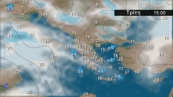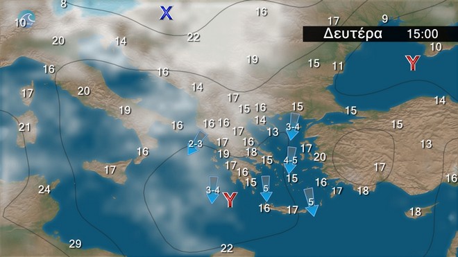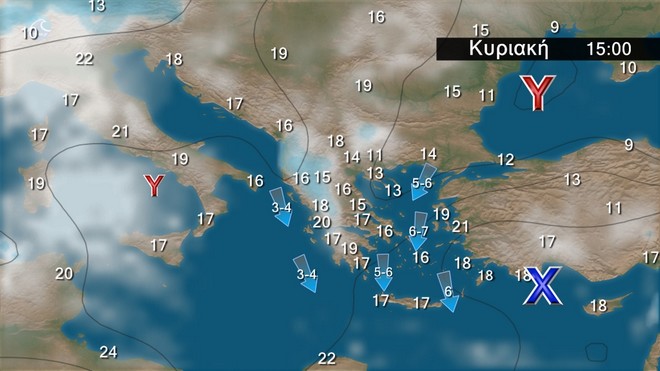 Γενικά αίθριος καιρός. Πρόσκαιρες νεφώσεις θα αναπτυχθούν στα ηπειρωτικά τις μεσημβρινές και απογευματινές ώρες, και στα ορεινά θα εκδηλωθούν τοπικοί όμβροι. Οι άνεμοι θα πνέουν μεταβλητοί 3 με 4 και στο Αιγαίο από βόρειες διευθύνσεις 5 με 6 μποφόρ με βαθμιαία εξασθένηση. Η θερμοκρασία δεν θα σημειώσει αξιόλογη μεταβολή.