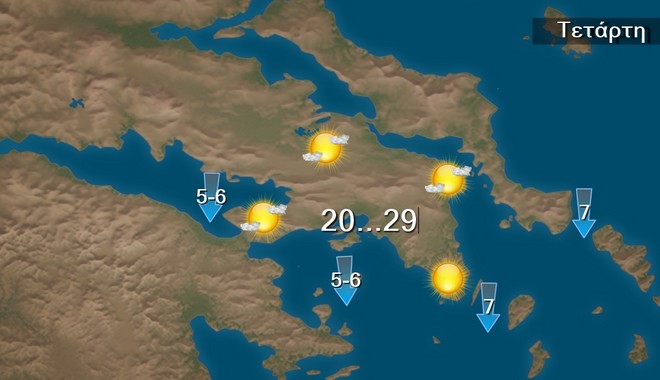 Την Τετάρτη προβλέπεται γενικά αίθριος καιρός, με παροδικές νεφώσεις στα ανατολικά και βόρεια ηπειρωτικά και την Κρήτη, όπου ενδέχεται να σημειωθούν τοπικές βροχές ή όμβροι. Τοπικά περιορισμένη ορατότητα τις πρωινές ώρες στα δυτικά και βόρεια ηπειρωτικά.
