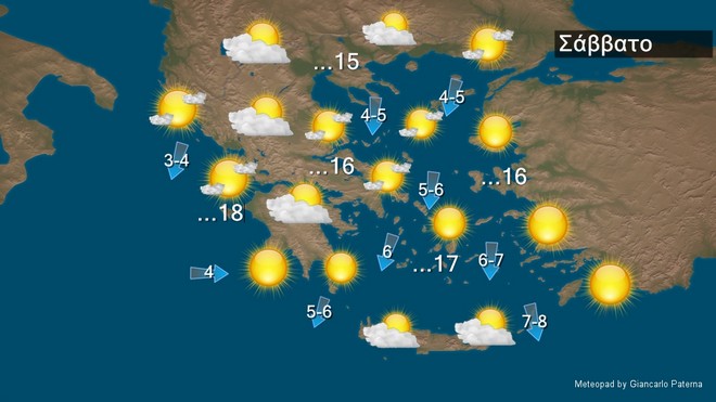 • Οι άνεμοι θα είναι βοριάδες και θα φτάνουν τα 6 με 7 μποφόρ και τοπικά τα 8 μποφόρ με εξασθένηση την Κυριακή