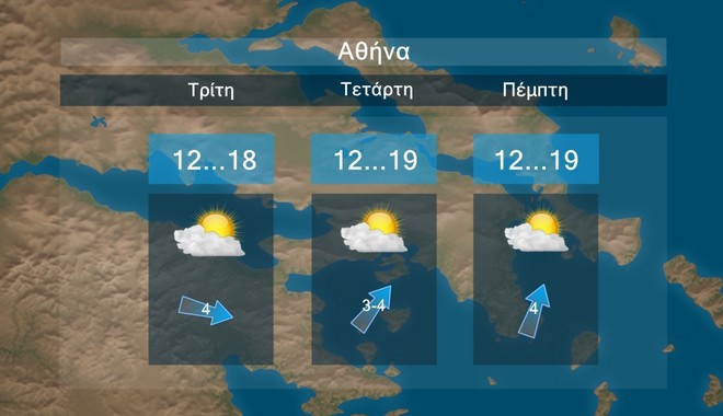 Στην Αθήνα προβλέπονται τοπικές νεφώσεις. Η θερμοκρασία θα έχει μέγιστες τιμές περί τους 18 με 19 βαθμούς Κελσίου