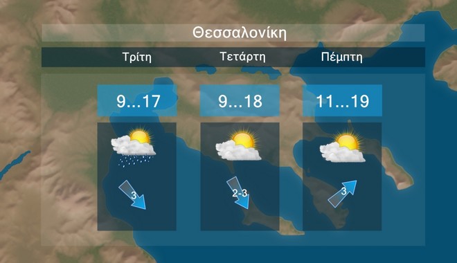Στη Θεσσαλονίκη προβλέπονται νεφώσεις με παροδικές βροχές την Τρίτη Η θερμοκρασία θα έχει μέγιστες τιμές περί τους 17 με 18 βαθμούς Κελσίου
