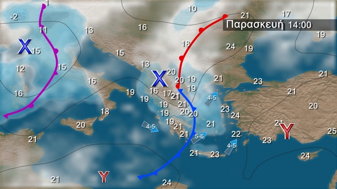 Πρόσκαιρη βελτίωση από το μεσημέρι της Παρασκευής και ξανά βροχές το Σαββατοκύριακο κυρίως στα δυτικά τα βόρεια και το Ανατολικό Αιγαίο από διαδοχικά βαρομετρικά χαμηλά που έρχονται από τα δυτικά.