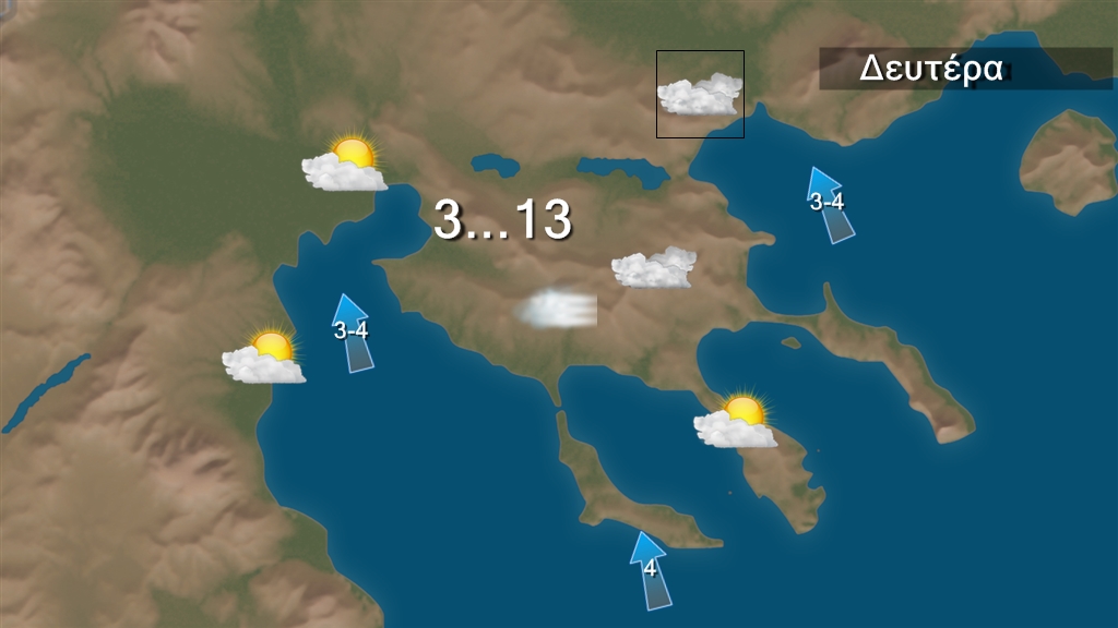 Ήπιος θερμοκρασιακά καιρός τη Δευτέρα στις περισσότερες περιοχές της χώρας  , ενώ οι άνεμοι στα πελάγη δεν θα ξεπερνούν τα 5 με 6 μποφόρ. Από το απόγευμα και από τα δυτικά προβλέπεται επιδείνωση του καιρού από τα δυτικά. Η πρόγνωση του καιρού από τον διευθυντή της ΕΜΥ Θοδωρή Κολυδά για το News 24/7.