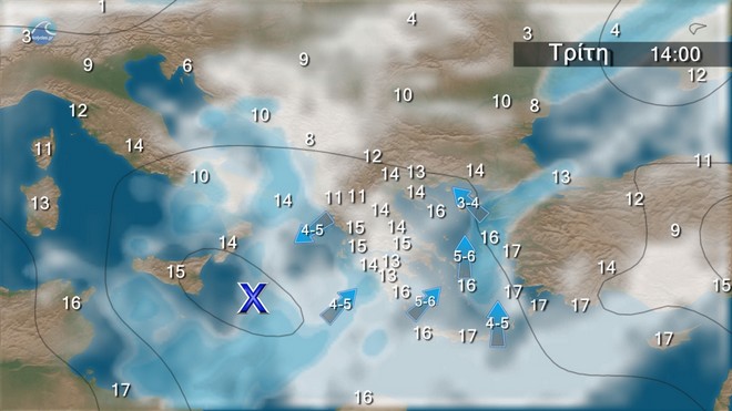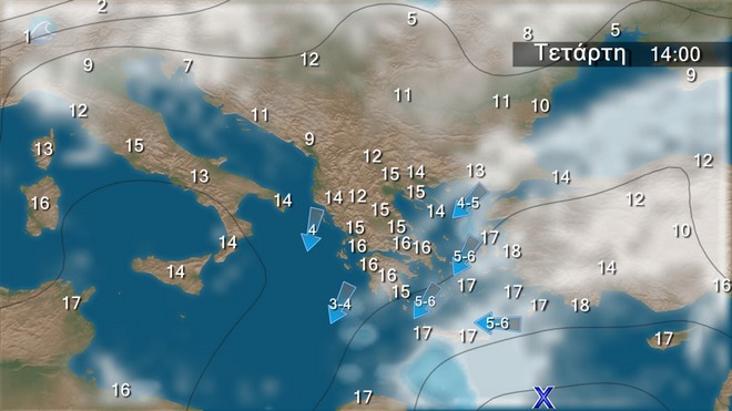 Νεφώσεις παροδικά αυξημένες με τοπικές βροχές και στα δυτικά και την ανατολική νησιωτική χώρα σποραδικές καταιγίδες. Λίγα χιόνια θα πέσουν στα βορειοδυτικά ορεινά. Οι άνεμοι θα πνέουν από νότιες διευθύνσεις 4 με 6 και στο νοτιοανατολικό Αιγαίο 7 μποφόρ. Το βράδυ στα δυτικά, τα κεντρικά και τα βόρεια θα στραφούν σε βόρειους έως 5 μποφόρ. Η θερμοκρασία δεν θα σημειώσει αξιόλογη μεταβολή.