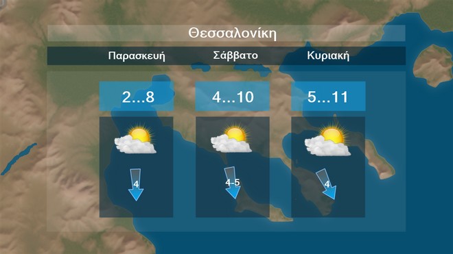 Στη Θεσσαλονίκη προβλέπονται τοπικές νεφώσεις . Η θερμοκρασία θα έχει μέγιστες τιμές περί τους 8 με 11 βαθμούς Κελσίου