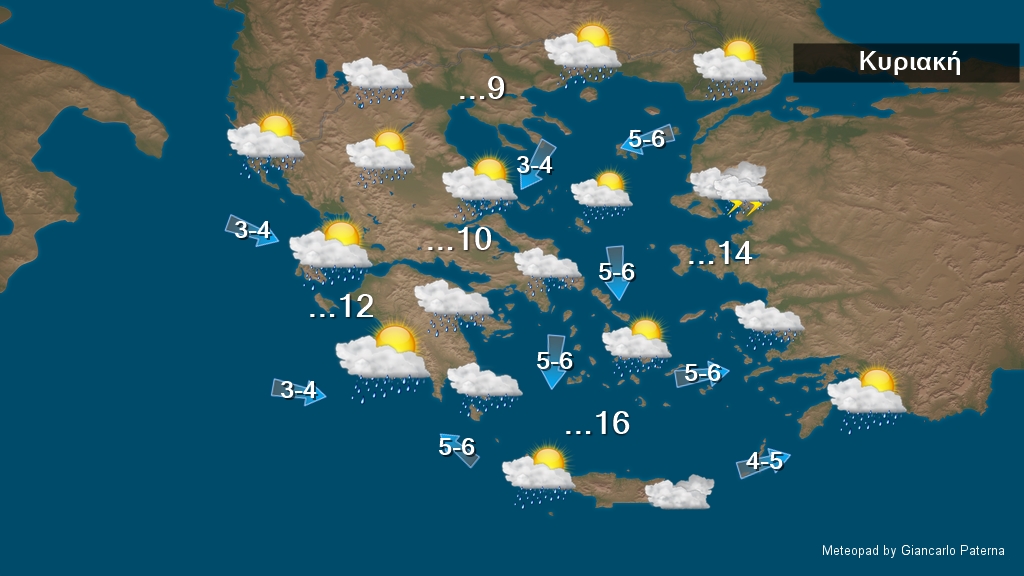 Σε όλη τη χώρα προβλέπονται νεφώσεις με βροχές και σποραδικές καταιγίδες. Τα φαινόμενα θα είναι κατά τόπους ισχυρά στη Θράκη, τα νησιά του ανατολικού Αιγαίου, τις ανατολικές Κυκλάδες και τα Δωδεκάνησα και από το απόγευμα θα περιοριστούν στα νοτιοανατολικά. Χιονοπτώσεις θα σημειωθούν στα ηπειρωτικά ορεινά, οι οποίες τις πρωινές ώρες θα είναι κατά τόπους πυκνές στα ορεινά και τα ημιορεινά της ανατολικής Μακεδονίας και της Θράκης (ενδεικτικό υψόμετρο τα 400 μέτρα και πάνω) με σταδιακή ύφεση των φαινομένων. Οι άνεμοι θα πνέουν στα βορειοανατολικά από βόρειες διευθύνσεις και στις υπόλοιπες περιοχές από νότιες διευθύνσεις, 4 με 6 και στο Αιγαίο τοπικά 7 με 8 και τοπικά έως 9 μποφόρ. Σταδιακά θα στραφούν σε δυτικών διευθύνσεων και θα εξασθενήσουν. Η θερμοκρασία θα σημειώσει νέα μικρή πτώση στα βόρεια. Παγετός θα σημειωθεί κατά τόπους στα κεντρικά και βόρεια ηπειρωτικά τις πρωινές και βραδινές ώρες.