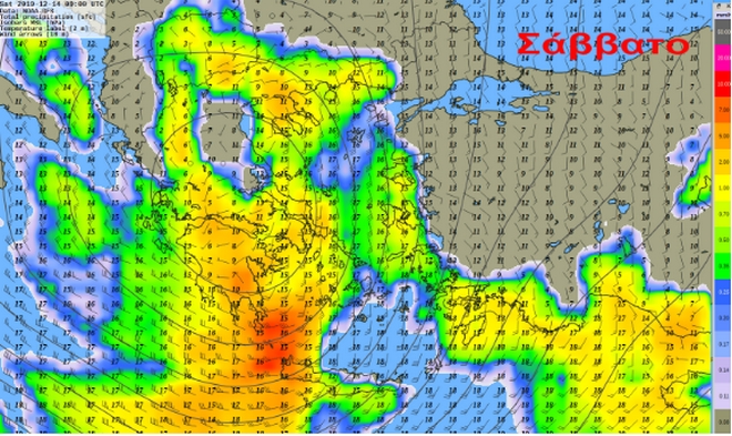 Στην Εύβοια, τις Σποράδες, τις Κυκλάδες, την Κρήτη, τα νησιά του ανατολικού Αιγαίου και τα Δωδεκάνησα νεφώσεις με τοπικές βροχές και τις πρωινές ώρες στα νοτιοανατολικά μεμονωμένες καταιγίδες, βαθμιαία στα βόρεια ο καιρός θα βελτιωθεί και οι βροχές θα περιοριστούν στην Κρήτη και τα Δωδεκάνησα. Στην υπόλοιπη χώρα γενικά αίθριος καιρός, με λίγες παροδικές νεφώσεις. Οι άνεμοι στα νοτιοανατολικά ανατολικοί νοτιοανατολικοί 5 με 6 μποφόρ που θα γίνουν ΒΔ και θα εξασθενήσουν.. Στις υπόλοιπες περιοχές από βόρειες διευθύνσεις 5 με 6 και πρόσκαιρα τις πρωινές ώρες στα πελάγη τοπικά 7 μποφόρ, με βαθμιαία εξασθένηση.