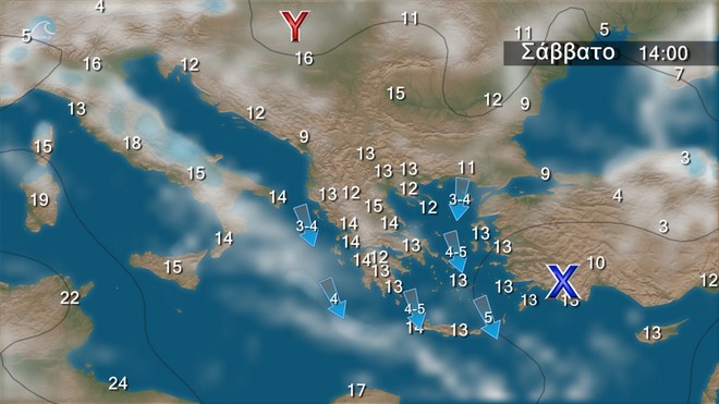 Γενικά αίθριος ο καιρός αύριο. Πρόσκαιρες νεφώσεις θα υπάρχουν στα ανατολικά και τα νότια και τις πρώτες πρωινές ώρες θα σημειωθούν, ασθενείς τοπικές βροχές στις Κυκλάδες, τα Δωδεκάνησα και την Κρήτη και ασθενείς χιονοπτώσεις στα ορεινά της Κρήτης. Οι άνεμοι θα πνέουν στα νοτιοανατολικά βόρειοι βορειοδυτικοί 5 με 6 και στην υπόλοιπη χώρα βόρειοι 3 με 4 μποφόρ που βαθμιαία θα στραφούν σε δυτικών διευθύνσεων με την ίδια ένταση. Η θερμοκρασία θα σημειώσει άνοδο ως προς τις μέγιστες τιμές της, όμως παγετός θα σημειωθεί στα ηπειρωτικά τις πρωινές και βραδινές ώρες, κατά τόπους στα βόρεια ισχυρός.