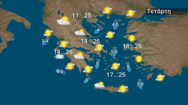 Στην Αττική προβλέπεται σχεδόν αίθριος καιρός. Οι άνεμοι θα πνέουν ΒΑ 4 με 5 και στα ανατολικά 5 με 6 μποφόρ και η θερμοκρασία θα φτάσει τους 25 βαθμούς.