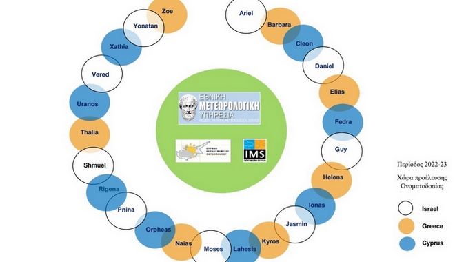 Έχει συμφωνηθεί από όλα τα κράτη ότι αν ξεκινήσει μια κακοκαιρία και της δοθεί ένα όνομα αυτό δεν θα αλλάζει. Αν έρθει για παράδειγμα ένα σύστημα από την Ιταλία ( που βρίσκεται σε άλλη ομάδα) τότε θα πρέπει το ίδιο όνομα που έχει δώσει η Ιταλία, να το υιοθετήσουμε και εμείς. Η συνεργασία της ΕΜΥ με τις Μετεωρολογικές Υπηρεσίες Κύπρου και Ισραήλ, στο πλαίσιο της Ομάδας Ανατολικής Μεσογείου, συνίσταται στην εβδομαδιαία επικοινωνία μεταξύ των αντίστοιχων προγνωστικών κέντρων, από 1ης Οκτωβρίου, με σκοπό την αλληλοενημέρωση για θέματα καιρού της περιοχής και την εξέλιξη της κίνησης των συστημάτων που πρόκειται να μας επηρεάσουν.