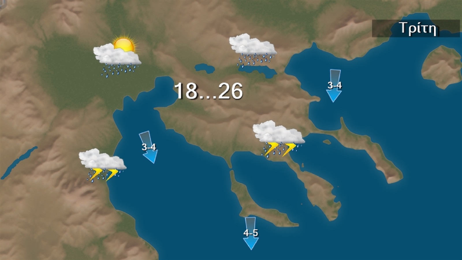 • Ισχυρές βροχές και καταιγίδες που θα συνοδεύονται από χαλαζοπτώσεις και μεγάλη συχνότητα κεραυνών την Τετάρτη , όχι όμως με εντάσεις όπως της Τρίτης. Τη νύχτα πιο εξασθενημένα τα φαινόμενα