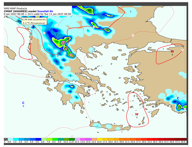Πυκνές χιονοπτώσεις θα σημειώνονται από το βράδυ της Δευτέρας (10-01-2022) στα ορεινά της δυτικής και κεντρικής Μακεδονίας και της Θεσσαλίας. Την Τρίτη (11-01-2022) κατά τόπους πυκνές χιονοπτώσεις θα σημειωθούν στα ορεινά – ημιορεινά Μακεδονίας, Θεσσαλίας, της κεντρικής και ανατολικής Στερεάς και βαθμιαία σε πεδινές περιοχές της Θράκης και της ανατολικής Μακεδονίας.