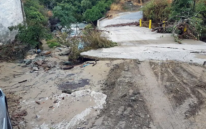 Λόγω πολλών κατολισθήσεων που σημειώθηκαν, το βράδυ της Δευτέρας δόθηκε απαγόρευση κυκλοφορίας στο κεντρικό δρόμο από Σταυροπέδα για Γαύριο και από Αποίκια για Βουρκωτή.
