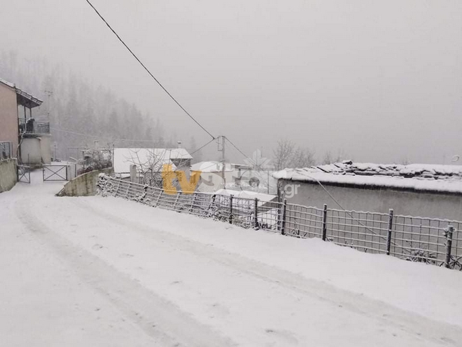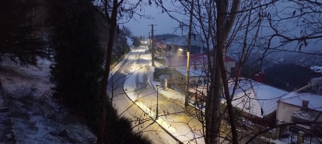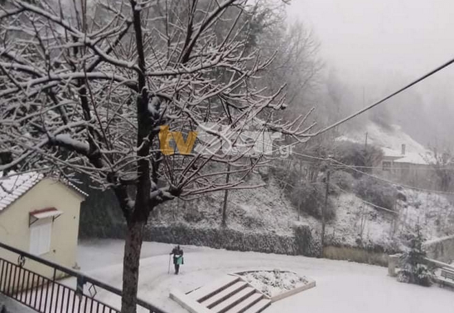 Χιόνισε στην πολύπαθη,  από την πυρκαγιά του Αυγούστου, Κοκκινομηλιά της Β. Εύβοιας. Στα υπόλοιπα ορεινά χωριά επικρατεί ελαφριά χιονόπτωση και πολλή βροχή στα χαμηλότερα υψόμετρα.