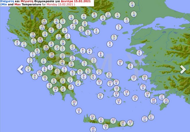 γ. Στα νησιά του Αιγαίου και πρόσκαιρα την Κρήτη από τις πρωινές ώρες της Κυριακής (14-02-2021) μέχρι αργά το απόγευμα.