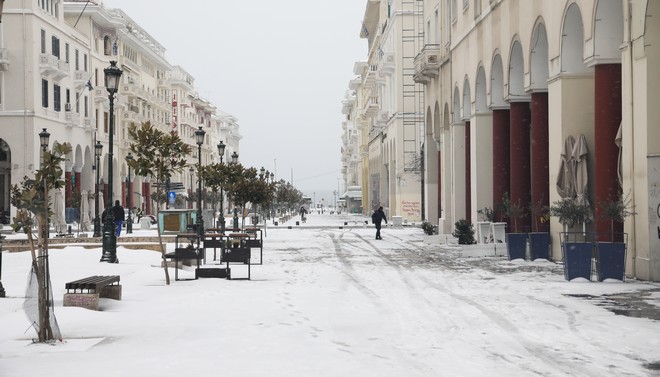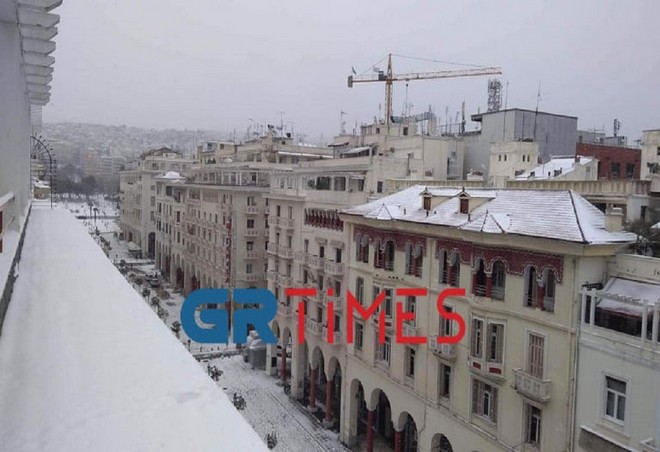 Κακοκαιρία “Μήδεια”: Στα “λευκά” η Θεσσαλονίκη – Χιόνι και στην πλατεία Αριστοτέλους