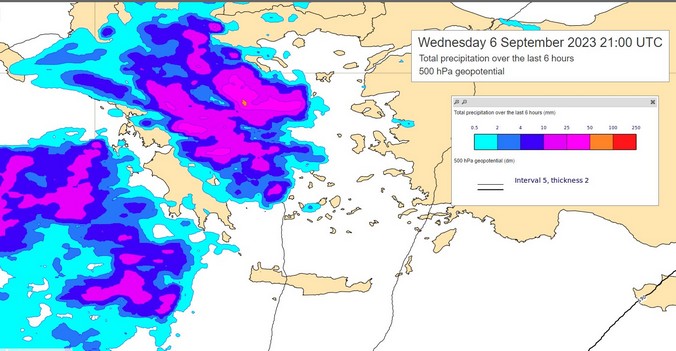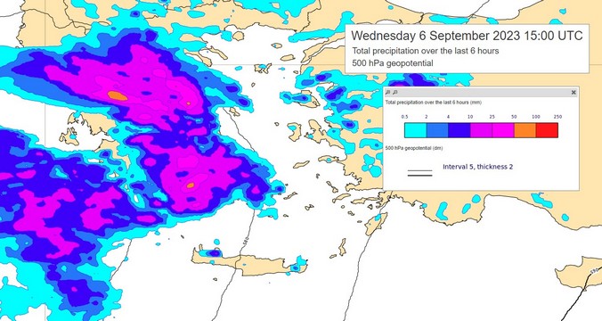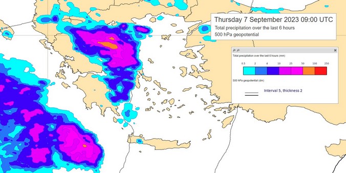 Το Έκτακτο Δελτίο Επικίνδυνων Καιρικών Φαινομένων, που εκδόθηκε στις 03-09-2023/1300 τοπική ώρα, επικαιροποιείται σύμφωνα με τα τελευταία διαθέσιμα προγνωστικά στοιχεία, καθώς η κακοκαιρία Daniel που ήδη από τη Δευτέρα 04-09-2023 προκαλεί ιδιαίτερα έντονα φαινόμενα, θα συνεχιστεί έως και τις μεσημεριανές ώρες της Πέμπτης 07-9-2023.