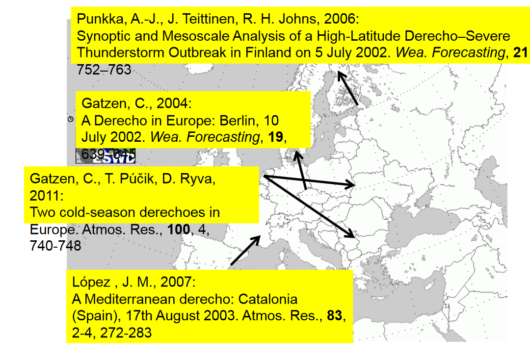 Σύμφωνα με έρευνα των επιστημόνων του Ευρωπαϊκού Εργαστηρίου Καταιγίδων (ESSL), οι περισσότερες από αυτές τις καταιγίδες έχουν πολύ μικρότερο και λιγότερο έντονο αποτύπωμα από το ίχνος που σημειώθηκε την Πέμπτη 18 Αυγούστου. Η θέση και η κατευθυντική κίνηση του συστήματος φαίνεται επίσης να είναι κάπως ασυνήθιστη και μας θυμίζει ένα derecho που έπληξε τη Γερμανία, συμπεριλαμβανομένου του Βερολίνου, τον Ιούλιο του 2002 (βλ. φωτο).