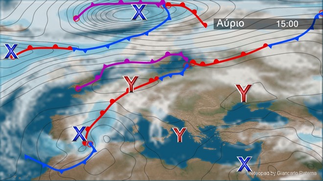 Στον χάρτη της Βαλκανικής διακρίνεται το πεδίο υψηλών πιέσεων στη περιοχή της Μαύρης θάλασσας που συνδυάζεται με τις χαμηλές πιέσεις της Ανατολικής Μεσογείου.