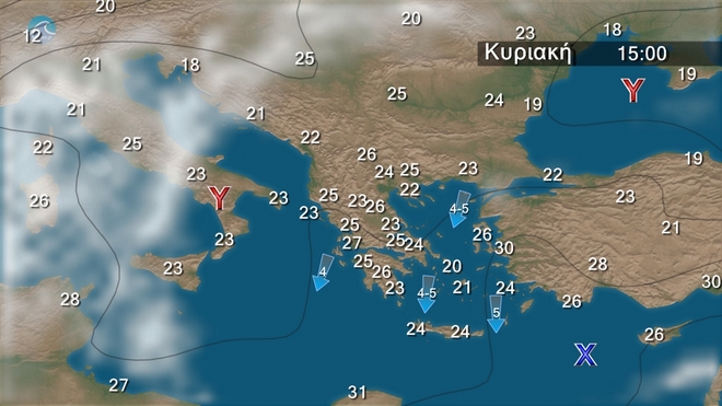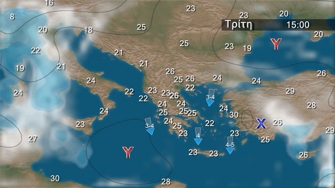 Γενικά αίθριος. Τοπικά περιορισμένη ορατότητα στα βόρεια ηπειρωτικά τις πρωινές και τις βραδινές ώρες. Οι άνεμοι θα πνέουν από βόρειες διευθύνσεις 3 με 5 και τοπικά στο Αιγαίο 6 μποφόρ με μικρή εξασθένηση από το απόγευμα. Η θερμοκρασία θα σημειώσει άνοδο κυρίως ως προς τις μέγιστες τιμές.