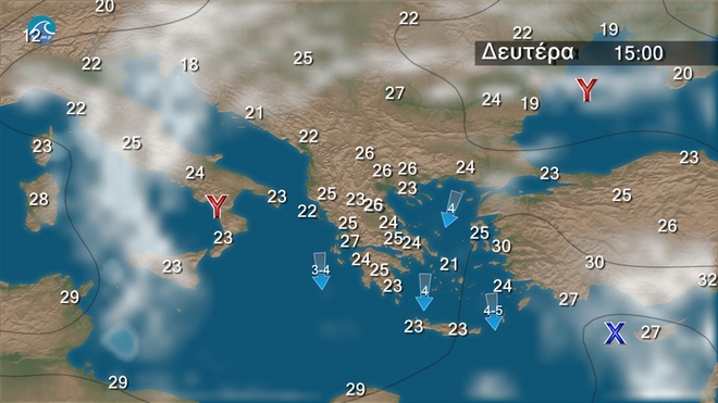 Γενικά αίθριος. Τοπικά περιορισμένη ορατότητα η ομίχλες στο Ιόνιο και τα ηπειρωτικά τις πρωινές και τις βραδινές ώρες. Οι άνεμοι θα πνέουν από βόρειες διευθύνσεις 3 με 4 και τοπικά στο Αιγαίο 5 μποφόρ. Η θερμοκρασία δεν θα σημειώσει αξιόλογη μεταβολή.