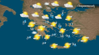 Η έξοδος των εκδρομέων την Παρασκευή θα γίνει χωρίς προβλήματα σε στεριά και σε θάλασσα. Ο καιρός θα είναι σχεδόν αίθριος καιρός με λίγες νεφώσεις, που παροδικά θα είναι αυξημένες στην κεντρική Μακεδονία και την ανατολική Θεσσαλία, όπου εκεί υπάρχει μικρή πιθανότητα να εκδηλωθούν ασθενείς τοπικές βροχές. Η γενική εικόνα του καιρού παραμένει καλή, ενώ η ορατότητα τις πρωινές και βραδινές ώρες θα είναι τοπικά περιορισμένη και θα σχηματιστούν ομίχλες. Οι άνεμοι θα είναι μεταβλητοί 3 με 4 μποφόρ και μόνο τοπικά θα φτάνουν τα 4 με 5 μποφόρ. Η θερμοκρασία στα βόρεια θα φτάσει τους 15 με 16 βαθμούς και στις υπόλοιπες περιοχές τους 17 με 19 βαθμούς Κελσίου