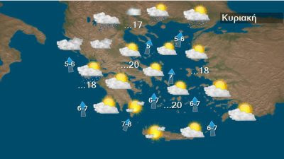Την Κυριακή θα υπάρχουν νεφώσεις παροδικά αυξημένες στα δυτικά και τα βόρεια όπου θα σημειωθούν τοπικές βροχές μικρής διάρκειας.Στο καρναβάλι της Πάτρας ο καιρός θα κυλήσει με παροδική συννεφιά , ενώ στο καρναβάλι της Ξάνθης το απόγευμα προς βράδυ της Κυριακής η ομπρέλα θα είναι απαραίτητη.