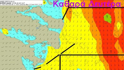 Οι άνεμοι θα πνέουν από νότιες διευθύνσεις 5 με 7 και στο Αιγαίο τοπικά 8 μποφόρ που βαθμιαία από τα δυτικά θα στραφούν σε δυτικούς βορειοδυτικούς και θα εξασθενήσουν. Η θερμοκρασία θα σημειώσει πτώση στα βορειοδυτικά. Στην υπόλοιπη χώρα θα διατηρηθεί σε υψηλά για την εποχή επίπεδα και θα φτάσει στα νότια τους 19 με 21 βαθμούς Κελσίου.