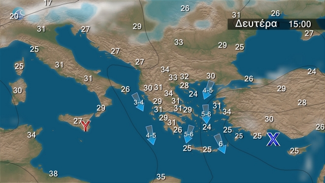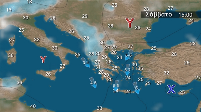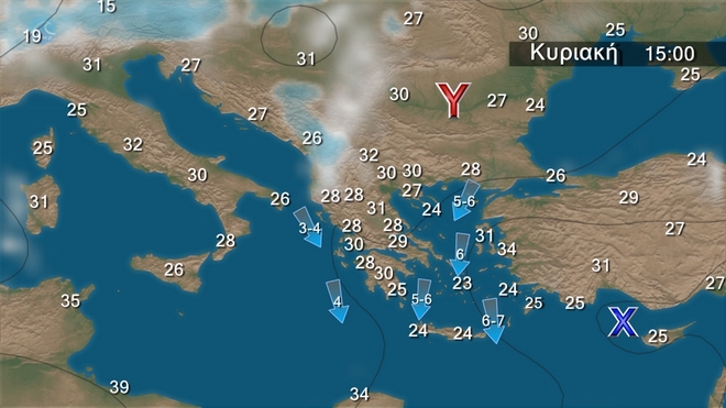 Η πρόγνωση του καιρού από τον διευθυντή της ΕΜΥ Θοδωρή Κολυδά. Οι άνεμοι θα φτάνουν τα 5-6 και τοπικά στο Αιγαίο τα 6-7 μποφόρ.