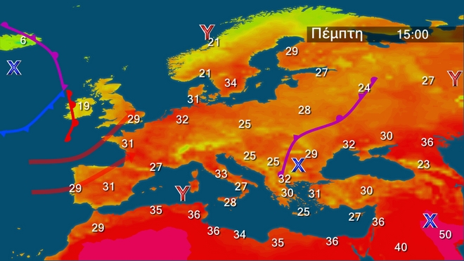 Στην Ευρώπη θα διατηρηθεί η αστάθεια εκτός από τη χώρα μας και στα υπόλοιπα Βαλκάνια, ενώ στη Δυτική Ευρώπη ξεκινά έντονο κύμα ζέστης. το οποίο δεν θα μας επηρεάσει