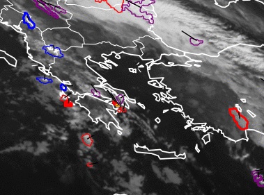 Σημαντικότερη βοήθεια οι Μετεωρολόγοι της ΕΜΥ είχαν από τα δορυφορικά συστήματα που έγκαιρα 1 ωρα πριν προειδοποιούν για τάση ανάπτυξης καταιγίδων . Η κόκκινη περιοχή που υπήρχε δυτικά της Αττικής τους προειδοποίησε ότι πράγματι η μεσημεριανή διαταραχή που είχαν δεί στους χάρτες θα επαληθευόταν.