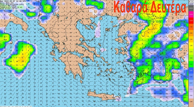 Την Καθαρά Δευτέρα θα έχουμε σχετική βελτίωση με λιγότερα φαινόμενα. Στα ανατολικά θα εκδηλωθούν βροχές και σποραδικές καταιγίδες, οι οποίες από το μεσημέρι σταδιακά θα εξασθενήσουν. Στην υπόλοιπη χώρα ο καιρός θα είναι άστατος με παροδικές νεφώσεις και λίγες βροχές, αλλά θα υπάρχουν και διαστήματα βελτίωσης.. Οι άνεμοι θα φτάνουν τα 4 με 5 και τοπικά τα 6 μποφόρ