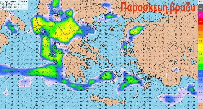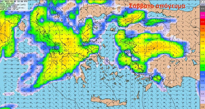 Το Σάββατο βροχές και καταιγίδες θα εκδηλωθούν, στη δυτική Ελλάδα, την κεντρική Στερεά, τη δυτική και κεντρική Μακεδονία, τη Θεσσαλία, τις Σποράδες και από το βράδυ στα νησιά του βορείου και ανατολικού Αιγαίου, την ανατολική Μακεδονία και τη Θράκη. Κατά τόπους πυκνές χιονοπτώσεις θα σημειωθούν στα ορεινά και ημιορεινά της Ηπείρου, της δυτικής και κεντρικής Μακεδονίας, καθώς και στα ορεινά της κεντρικής Στερεάς και της Θεσσαλίας.