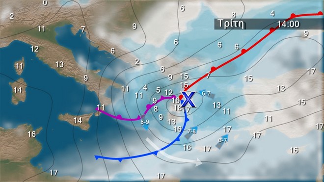 Από την Τρίτη το σκηνικό του καιρού θα αλλάξει και θα έχουμε βροχές και καταιγίδες και χιόνια στα ορεινά. Οι άνεμοι βαθμιαία θα στραφούν σε βοριάδες και θα πέσει η θερμοκρασία κατά 8 με 10 βαθμούς συνολικά το διήμερο Τρίτης Τετάρτης.