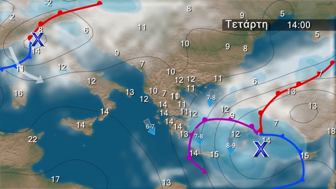 Πάντως το κύμα αυτό της κακοκαιρίας δεν θα κρατήσει πολύ καθώς μέσα στην Τετάρτη ο καιρός θα βελτιωθεί στη δυτική και τη βόρεια Ελλάδα και τα καιρικά φαινόμενα θα περιοριστούν στα ανατολικά και νότια. Την Πέμπτη θα μας επηρεάσει άλλο χαμηλό το οποίο και αυτό έρχεται στη περιοχή μας από τα βορειοδυτικά Βαλκάνια.