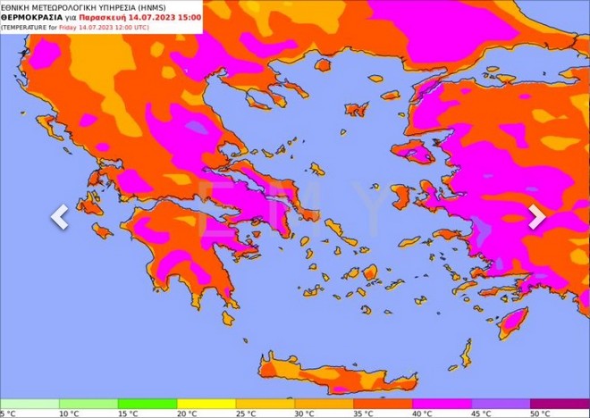 Την Παρασκευή (14/7) οι υψηλές θερμοκρασίες θα κορυφωθούν.