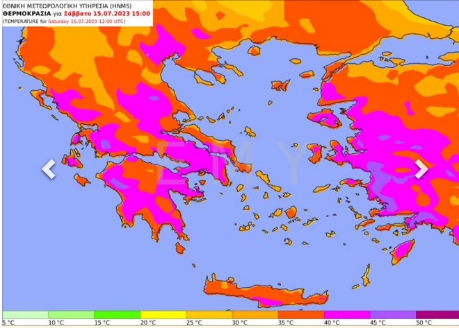 Το Σάββατο (15/7) οι πολύ υψηλές θερμοκρασίες θα διατηρηθούν.
